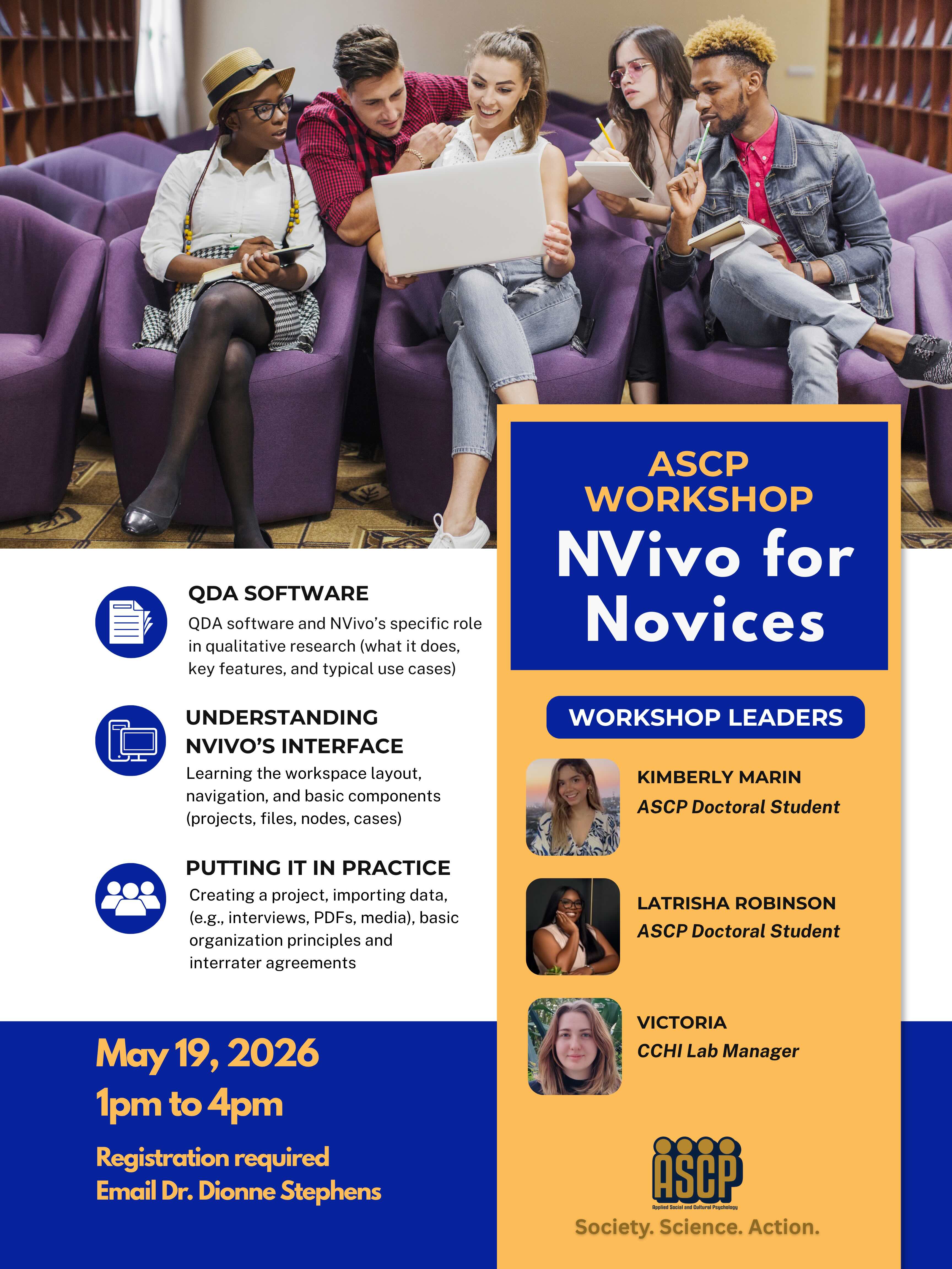 In support of students’ professional goals, the ASCP program offers regular capacity building and professional development trainings for students in both the Ph.D. and Certificate programs. These opportunities are designed to help students develop practical skills, expand their knowledge, and prepare for careers in applied social and cultural psychology.